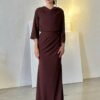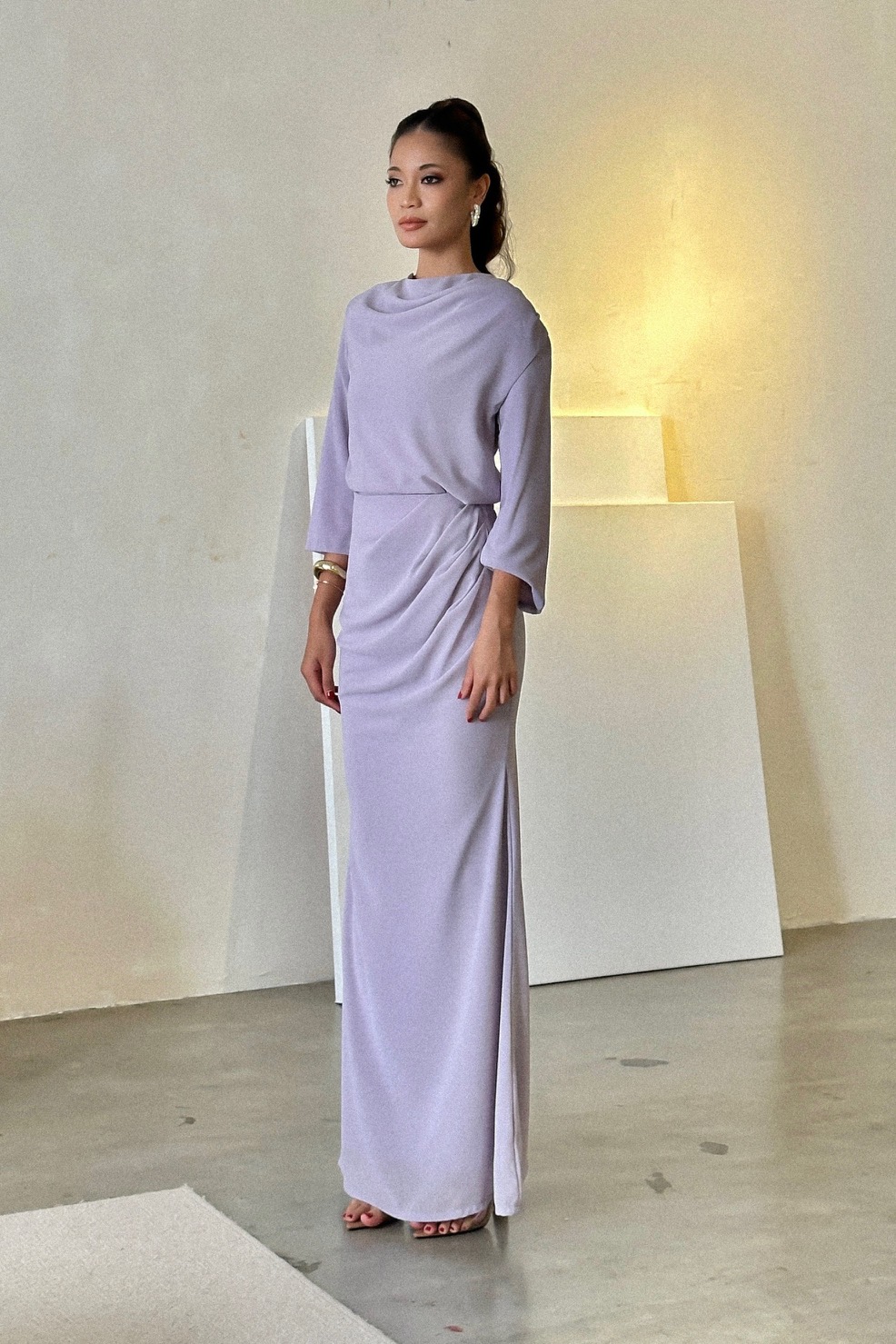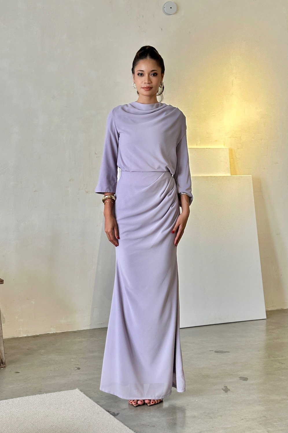 RIMA set is all about ease, elegance and minimalism. Cut for a boxy-slim silhouette, this RIMA set is made from breathable premium heavy chiffon and jersey lining falls to a floor-sweeping maxi hem that feels equally effortless and elegant. It has box cut top and side-draped semi mermaid cut.